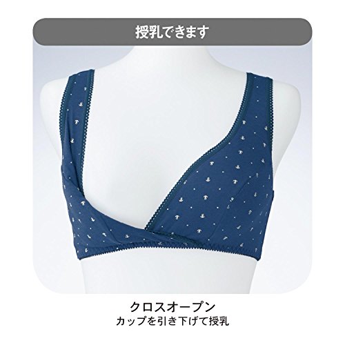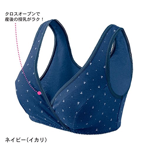 授乳対応選べるクロスオープンハーフトップ ネイビー(ボーダー) サイズ:マタニティL