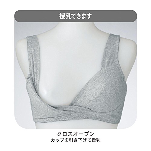 授乳対応L字型ワイヤークロスオープンシンプルブラジャー2色セット 杢グレー&ブラック サイズ:E70