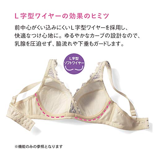 先輩ママに大人気の「授乳対応ソフトワイヤーブラジャー(クロスオープンタイプ)」のモールドタイプ。カジュアルなレース模様と合わせやすいカラーが魅力。カップとストラップにはレースを使っていないのでアウターにひびきにくく、妊娠から授乳期の変化するバストをやさしくサポート。締めつけやくい込みを防いでくれるソフトなL字型ワイヤーで、ラクなつけ心地で美胸をキープしてくれます。乳腺の圧迫も緩和し、授乳期に重みを増すバストの下垂対策にも。片手でサッと簡単に授乳できるクロスオープンタイプの授乳機能付きで、産後も長く活躍。初めてのマタニティブラジャーにもおすすめです。