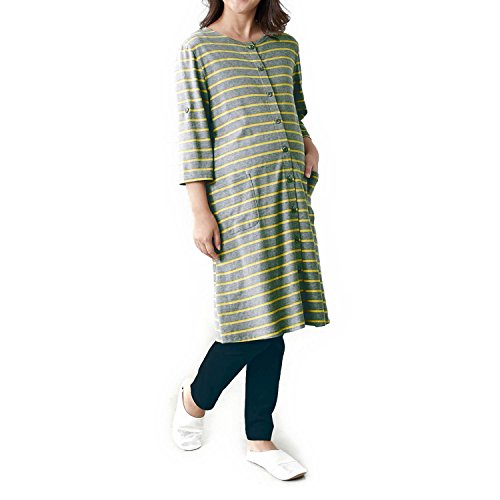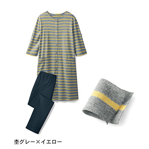 綿100% 入院準備 授乳対応 マタニティ ロングパジャマ 杢グレー×イエロー サイズ:マタニティLL
