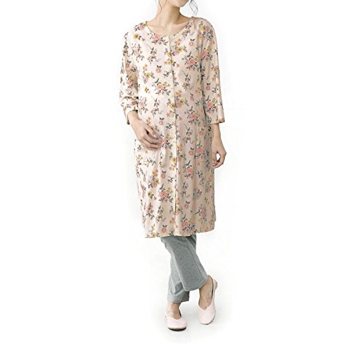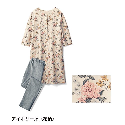 綿100% 入院準備 授乳対応 マタニティ ロングパジャマ アイボリー系(花柄) サイズ:マタニティM~L