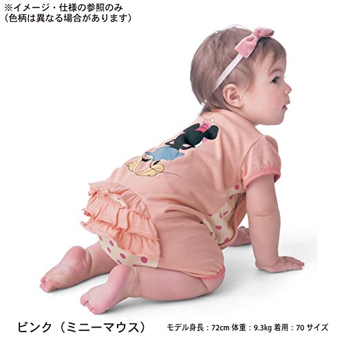 お尻のフリルが女の子らしい。お尻のフリルが女の子らしいカエルロンパース。脚をバタバタと動かしやすい大きめのマチ付き。スナップボタンも胸やお腹に当たりにくい仕様です。かわいいディズニーキャラクターのプリントでプレゼントにもぴったり◎ (C)Disney(C)Disney