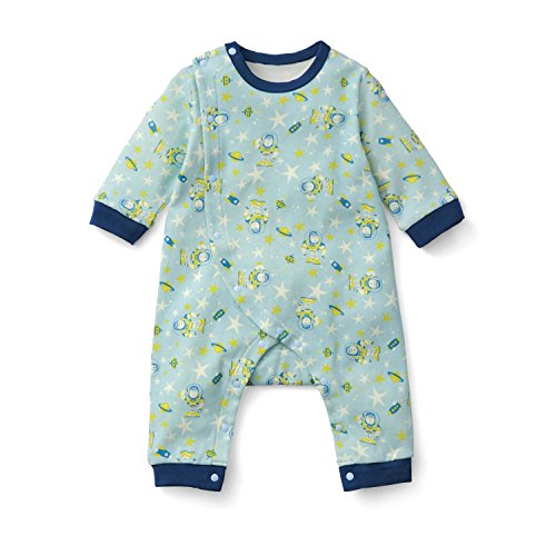 (60)総丈49 (70)総丈55 (80)総丈61cm ●前:全開スナップボタン留め、股下全開スナップボタン留め ●(カットソー)綿100%(スムース) ●中国製 ※柄の出方が多少異なることがあります。