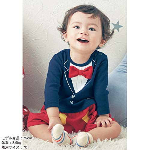 (70)総丈46.5(80)総丈50.5(90)総丈53.5cm●前:股下全開スナップボタン留め、左肩スナップボタン留め、プリント、飾りリボン●(カットソー)綿100%(スムース)●中国製