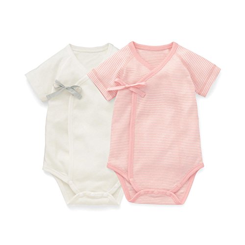 フライス 前開き 半袖 ボディスーツ 2枚 セット ライトピンクセット サイズ:60