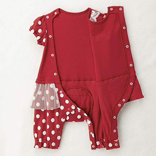 一枚着るだけでミニーマウスに変身できるカバーオール。スカート風のフリルに華やかなチュールを重ねて、後ろにもハイハイの時にお尻が可愛く見える二段フリルをあしらっています。肌に触れる部分は綿100%のスムース素材で着心地も快適です。(C)Disney