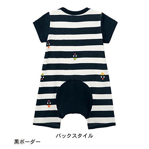 半袖カエルロンパース しましまぐるぐるシリーズ 黒ボーダー サイズ:80