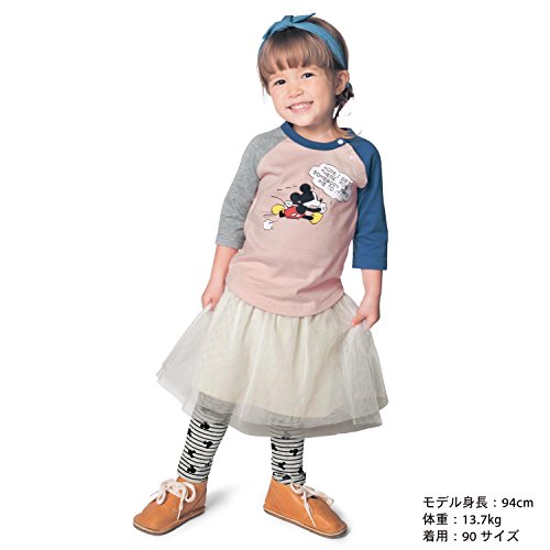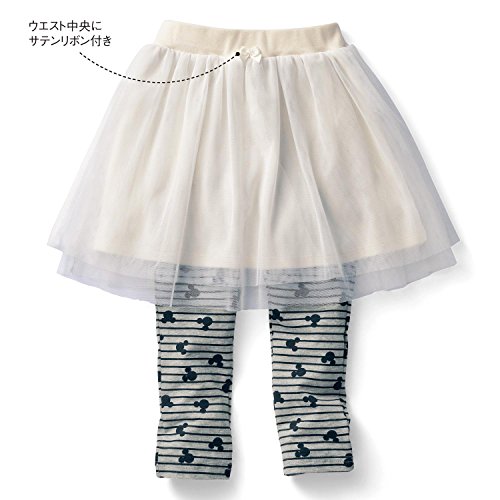 大人顔負けのオシャレな着こなしが決まる!可愛くクールなヴィンテージ風デザイン。ふわふわのチュールでガーリーな着こなしが楽しめるスカッツ。一体になっているレギンスは、ボーダーとミッキーのマークを合わせた柄になっているのがポイント。通園に便利なお名前スペース付き。 (C)Disney(C)Disney
