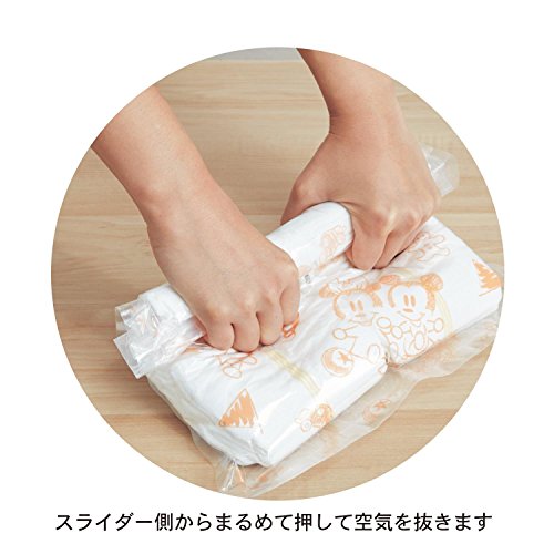 紙おむつを袋に入れてくるくる巻いて空気を抜き、スライダーで密閉するだけでかさばる紙おむつをぎゅっと圧縮。おむつのサイズによっては最大6枚程収納できるから、荷物が増えがちな旅行の時も大助かりです。(C)Disney