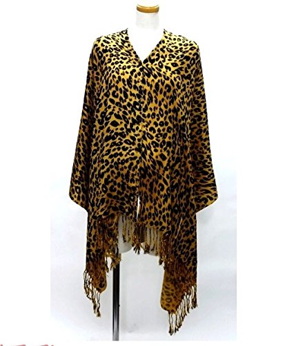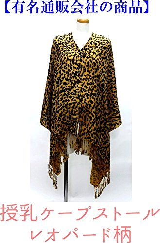 ベルメゾン 授乳ケープストール レオパード柄 ヒョウ柄 前ボタン留め (大判, キャメル ヒョウ柄)