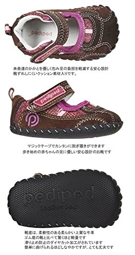 Pediped(ペディペド)は、まるでママの手のひらに包まれているような履き心地! 未発達の赤ちゃんの足を優しく守るPediped(ペディペド)のシューズは、アメリカの小児科医も推奨するクオリティです。 リーズナブルでありながら、カジュアルからフォーマルなお出かけまで選べる豊富なデザインが人気。 ハリウッドセレブにもファンが多いアメリカ発のキュートなベビーシューズブランドです。