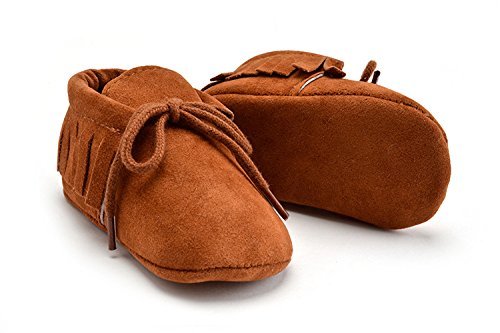 秋冬 赤ちゃん キッズ スクラブ タッセル ウォーカー ベビーシューズ ソフト底レース ファーストシューズ 屋内 子供 幼児 新生児靴 滑り止め (13cm(12-18ヶ月), 茶色)