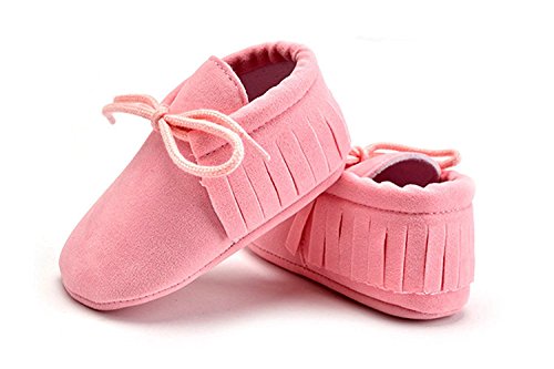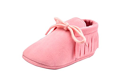 秋冬 赤ちゃん キッズ スクラブ タッセル ウォーカー ベビーシューズ ソフト底レース ファーストシューズ 屋内 子供 幼児 新生児靴 滑り止め (13cm(12-18ヶ月), ピンク)