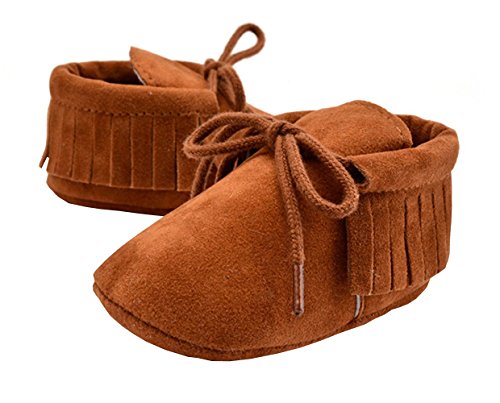 秋冬 赤ちゃん キッズ スクラブ タッセル ウォーカー ベビーシューズ ソフト底レース ファーストシューズ 屋内 子供 幼児 新生児靴 滑り止め (11cm(0-6ヶ月), 茶色)