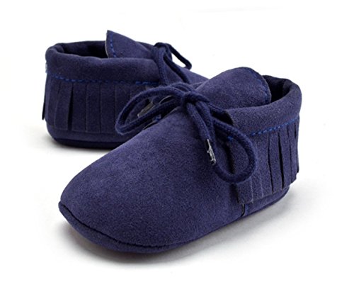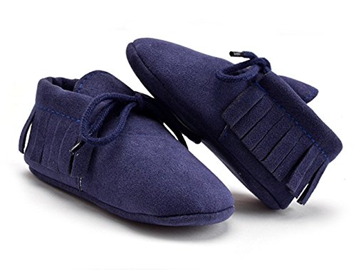 秋冬 赤ちゃん キッズ スクラブ タッセル ウォーカー ベビーシューズ ソフト底レース ファーストシューズ 屋内 子供 幼児 新生児靴 滑り止め (12cm(6-12ヶ月), ネイビーブルー)