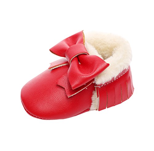 ユニセックスベビー幼児は冬アンチちょう結びのスノーブーツPrewalkerシューズをスリップ秋 (12-18ヶ月, レッド)