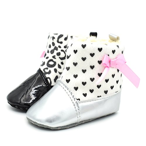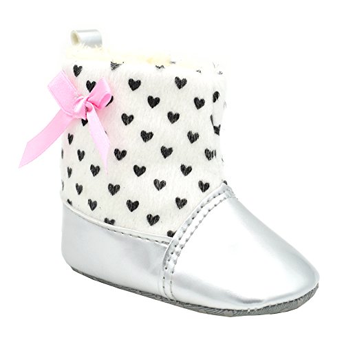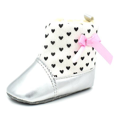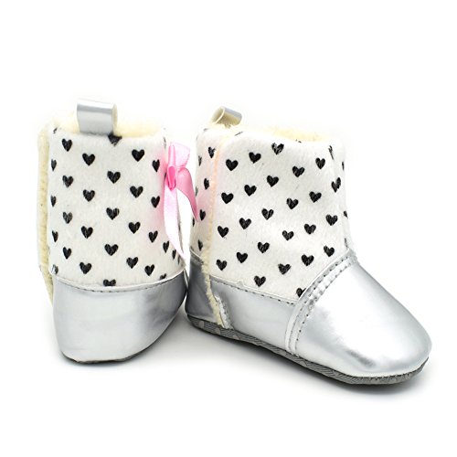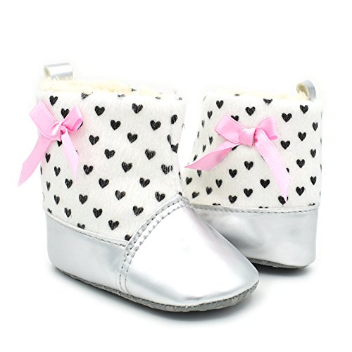 新生児 ベビーガール 花柄プリント 冬の暖かい スノーブーツ 滑り止め 柔らかいソール ファーストシューズ マーティンブーツ (3-6ヶ月, ホワイト)