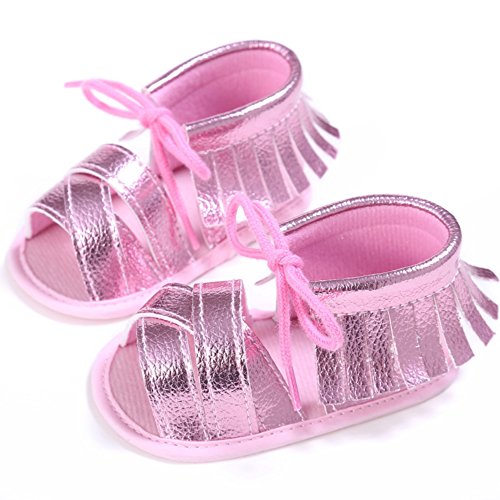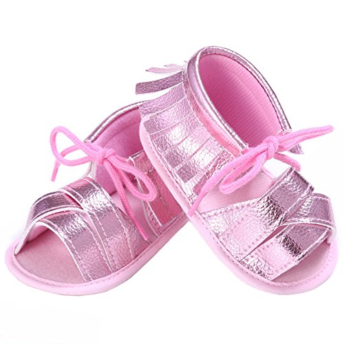 夏 可愛い 女の子 プリンセス  タッセル サンダル  ベビー ベッド 靴 柔らかい ソフト (0ー6月,  ピンク )