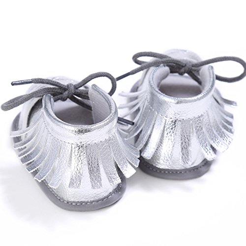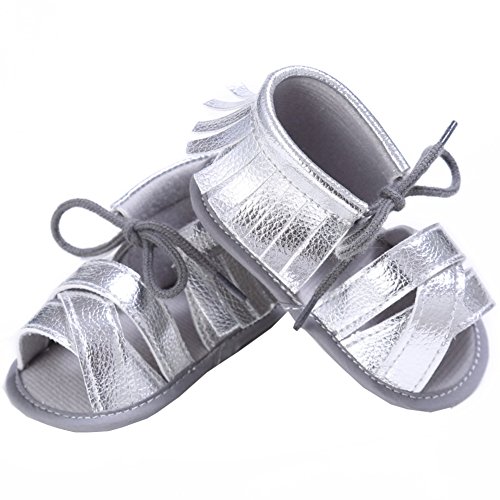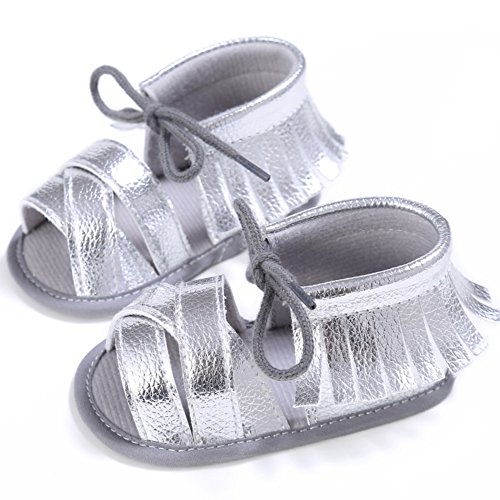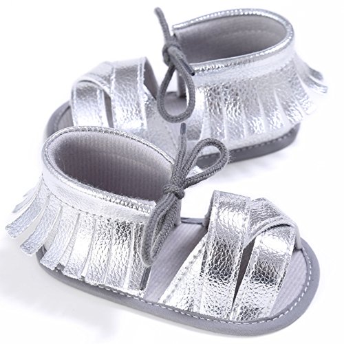 夏 可愛い 女の子 プリンセス  タッセル サンダル  ベビー ベッド 靴 柔らかい ソフト (12ー18月,  銀)