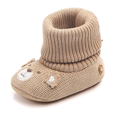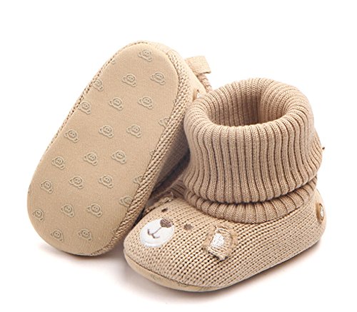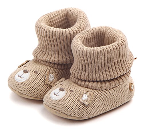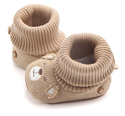 赤ちゃん 春 秋 可愛い靴 綿布 柔らかい底 滑り止め ベビーシューズ 幼児用 ウールの靴 (11cm(3-6ヶ月), カーキ)