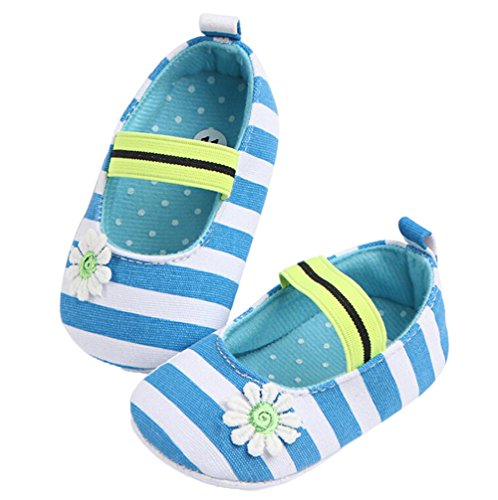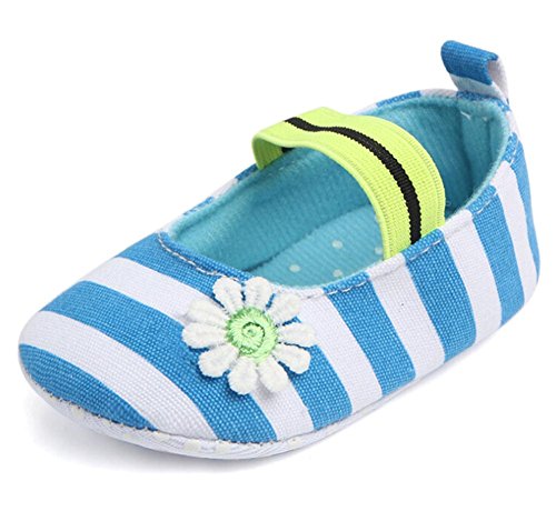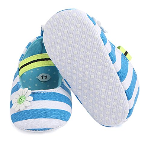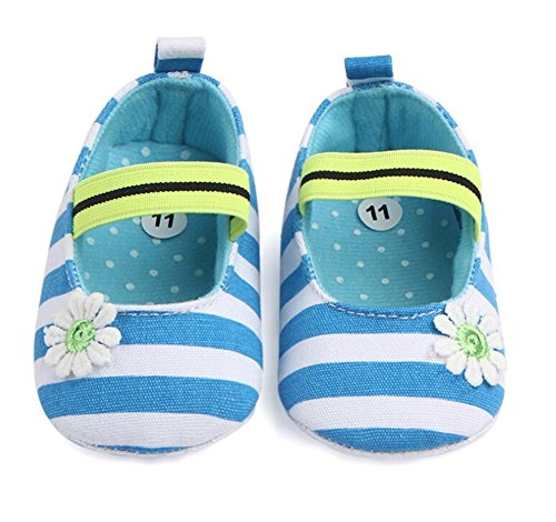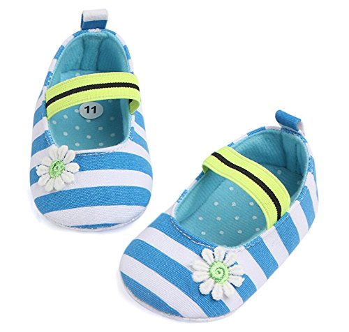 ベビー ガールズ 花柄 ストライプ 滑り止め ファーストシューズ ウォーキング靴 プリンセスシューズ (11cm(3-6ヶ月), ブルー)