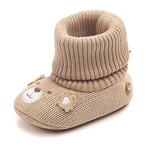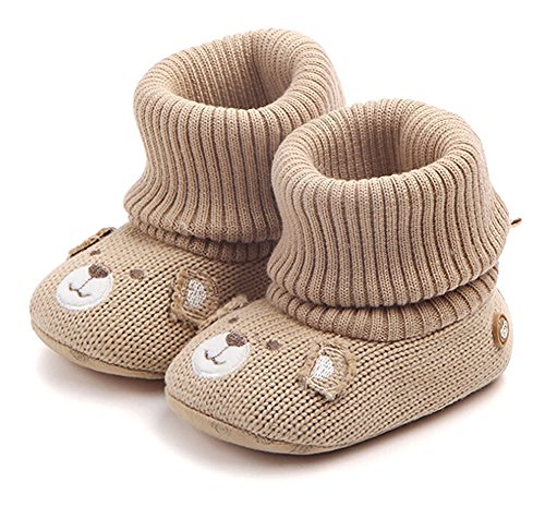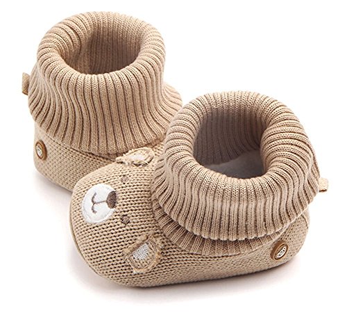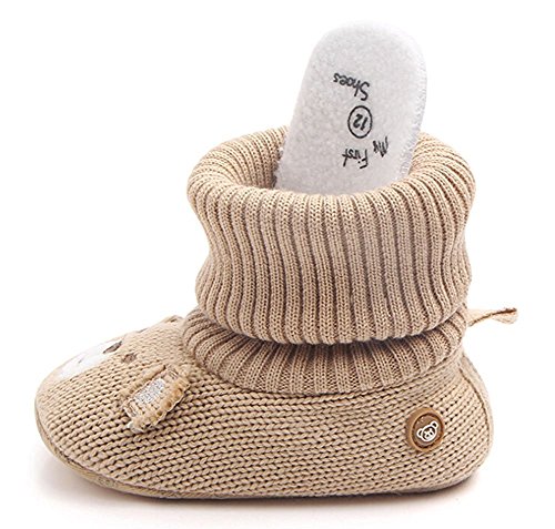 赤ちゃん 春 秋 可愛い靴 綿布 柔らかい底 滑り止め ベビーシューズ 幼児用 ウールの靴 (13cm(9-12ヶ月), カーキ)
