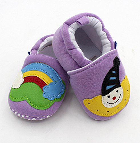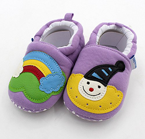 ユニセックスベビー新生児コットンファーストシューズソフトレインボー滑り止め冬Prewalkerの靴を秋 (12, パープル)
