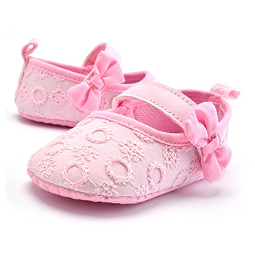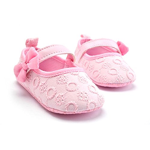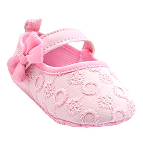 ベビーボーイズガールズちょう結びの布花の柔らかいソールベビーベッドシューズまず靴0-18ヶ月 (0-6ヶ月, ピンク)