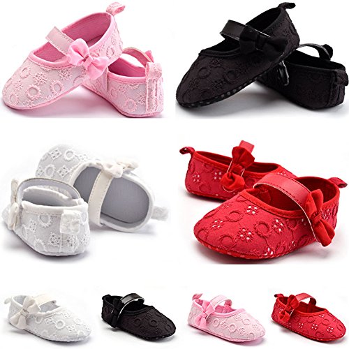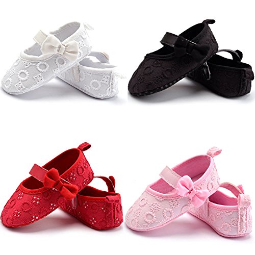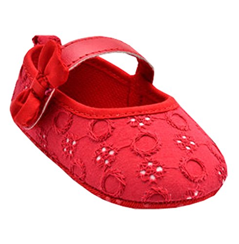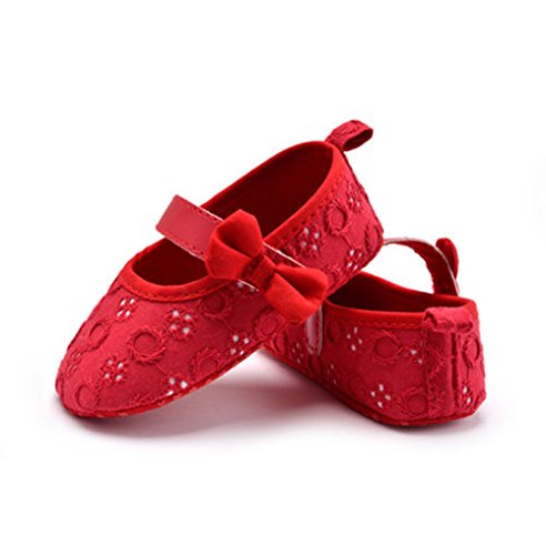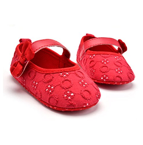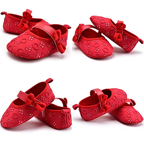 ベビーボーイズガールズちょう結びの布花の柔らかいソールベビーベッドシューズまず靴0-18ヶ月 (0-6ヶ月, レッド)