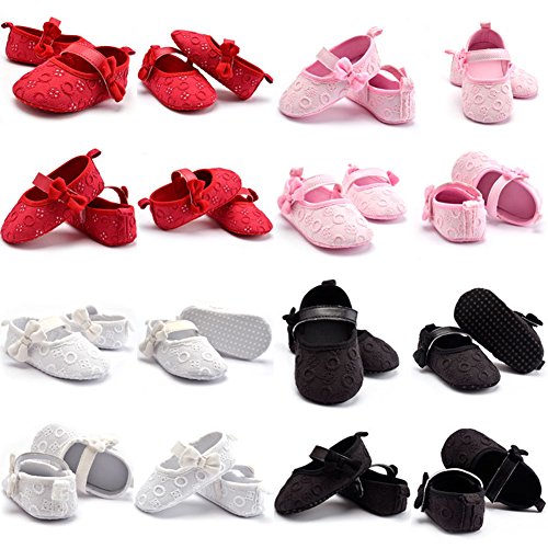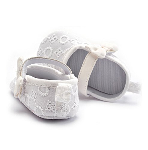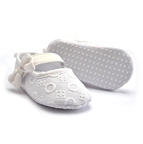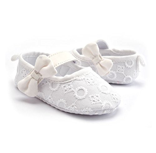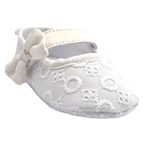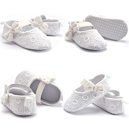 ベビーボーイズガールズちょう結びの布花の柔らかいソールベビーベッドシューズまず靴0-18ヶ月 (0-6ヶ月, ホワイト)