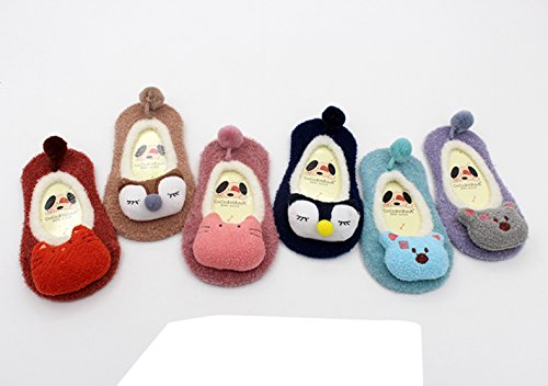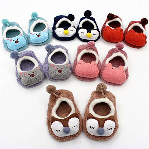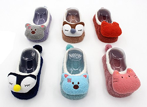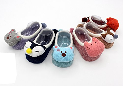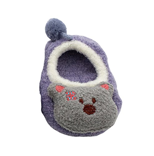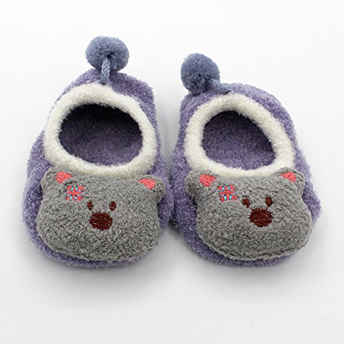 新生児赤ちゃん少年少女 漫画ソフトソールベビー靴 滑り止め 暖かい ファーストシューズ フロアソックス (0-1歳, グレーとパープル)