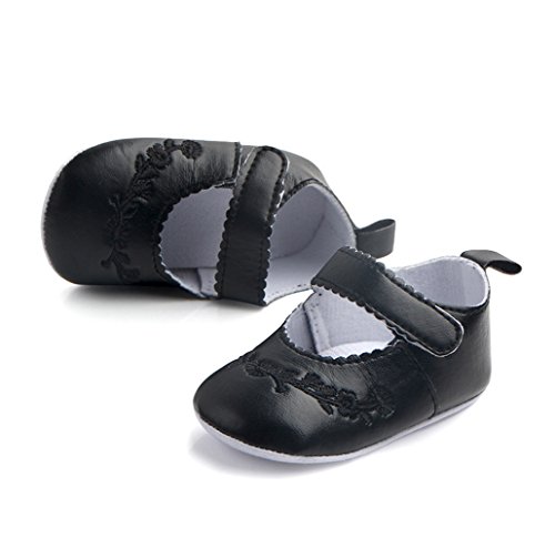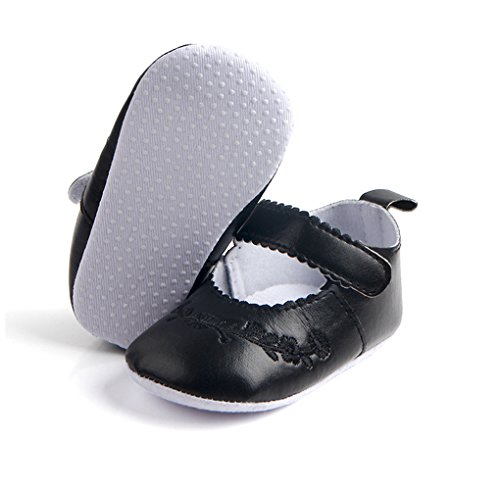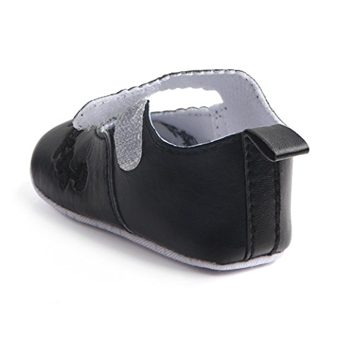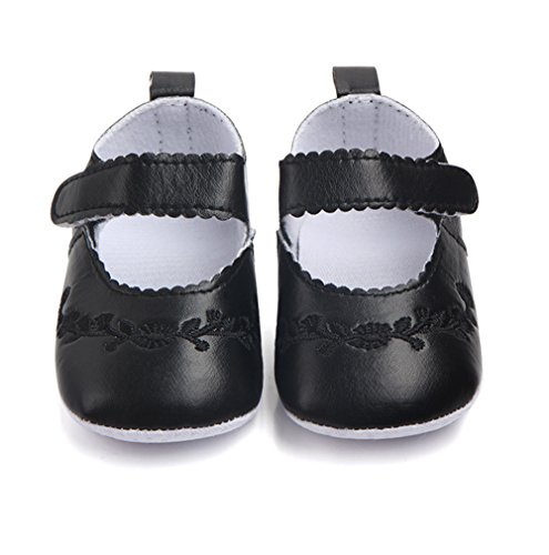 ベビー 春 秋 PUレザー 刺繍 滑り止め ファーストシューズ 可愛い靴 (11cm, ブラック)