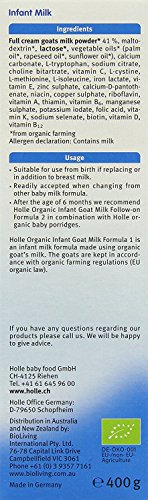 【イギリス国内販売用】ホレ オーガニック有機原料使用・ヤギミルク (Holle Organic Infant Goat Milk Formula) 乳児用ゴート粉ミルク ステップ 1【0~6カ月から】400g 1箱