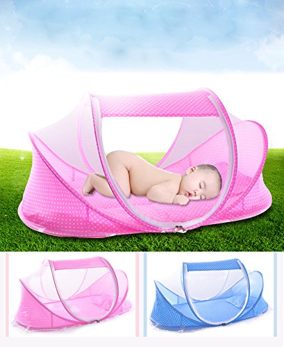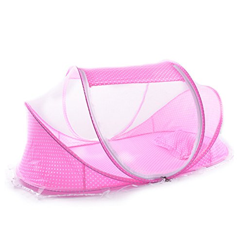 (ホールドウェル)holdwell ベビー蚊帳 折りたたみ 携帯用 アウトドア コンパクト キャンプ 夏 0~3歳 3点セット ピンク