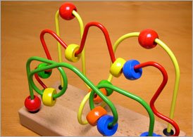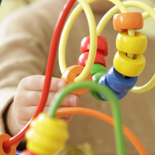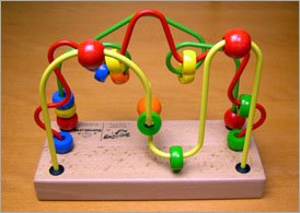 色とりどりのワイヤーにそってビーズを動かして遊びます。