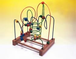 色・形・大きさを知る、空間を感じる、そして、目や手でビーズを追ったり、指先をつかったり…など、遊びながら得られる学習効果は多く、いまや積み木やパズルなどと同じように基礎的な遊具の定番です。 遊園地のジェットコースターをとじこめたようなルーピング。想像を重ねながら指でビーズを動かして、色と形の変化を楽しみましょう。