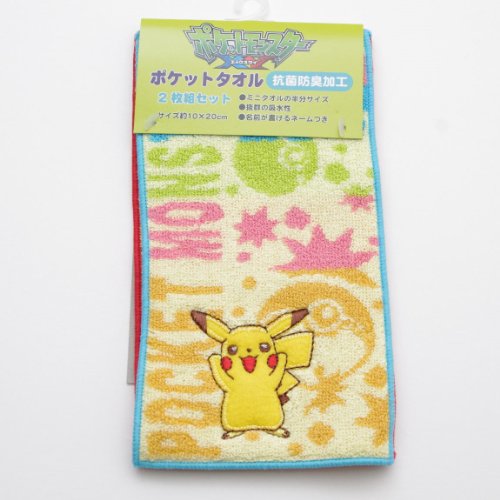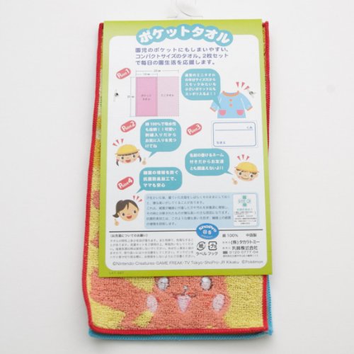 ポケットモンスターポケットタオル2枚組 園児のポケットにもしまいやすい、コンパクトサイズのタオル 名前が書けるネームつき 綿100% 中国製 サイズ:約10×20cm(ミニタオルの半分サイズ)