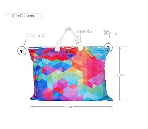 - サイズ:幅90cm×高さ70cm(持ち手52c) 容量のめやす:70c×120c(3つ折り)敷布団と85c×110c(2つ折り)掛布団が楽々入ります