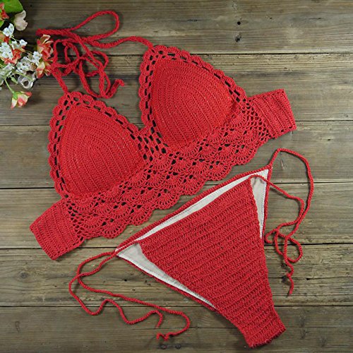 女性のセクシーなビキニ水着鉤針手作り鉤針編みニット水着カスタム色中空鉤針 (M, red)