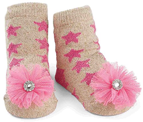 Mud Pie Glitter Star Socks are made of cotton.;Glitter detail has jeweled pom-pom on toe.;This product supports March of Dimes.;Socks Size:0-12 Months.;These socks will top off any outfit of your princess.