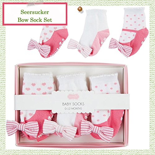マッドパイ シアサッカー リボン ベビーソックス 3点セット 0-12ヶ月 【42176】 [並行輸入品]