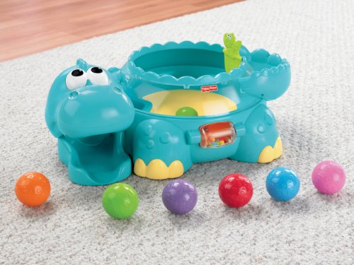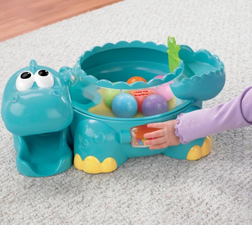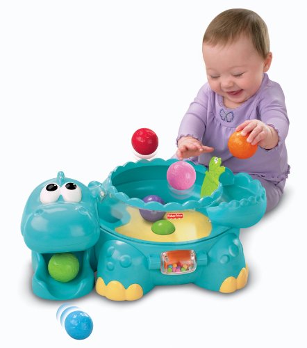 This adorable friend is big on ball-popping fun. Baby can place balls in the dino to see them pop up and soar out. Or they might roll down the tail ramp and out of his mouth?there?s always a surprise for baby. The friendly dino is full of lively music (8 playful tunes) and fun sounds, rewarding baby with each spin of the roller. Includes six colourful balls for put-and-take play. Requires 3C (LR14 Alkaline) 1,5V. Not Included. Please dispose of batteries safely. Ages 6 ? 36 months.