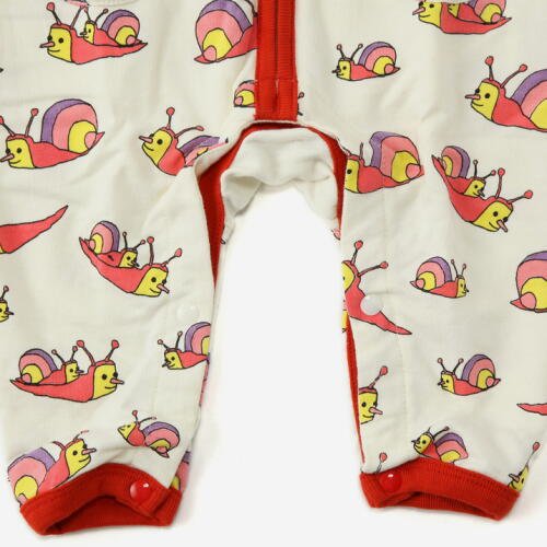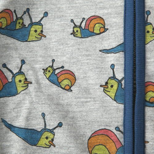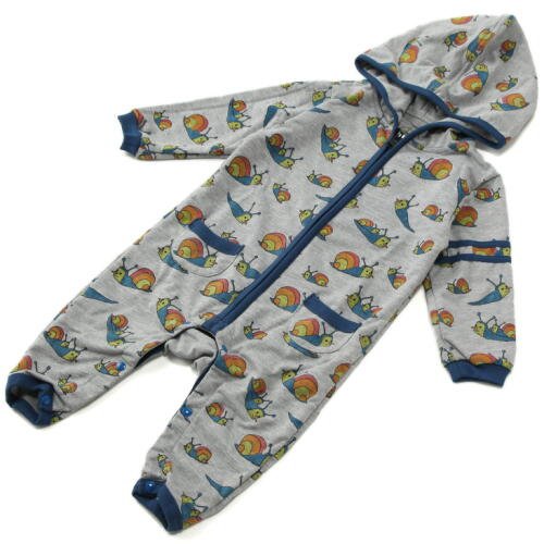 【商品のコメント1】可愛い!「虹のかたつむり」。厚すぎないから動きやすく、薄すぎないから丈夫でしっかりとした生地感。ミニ裏毛(スウェット生地)。好評の上質やわらかコットン100%のカバーオールです。