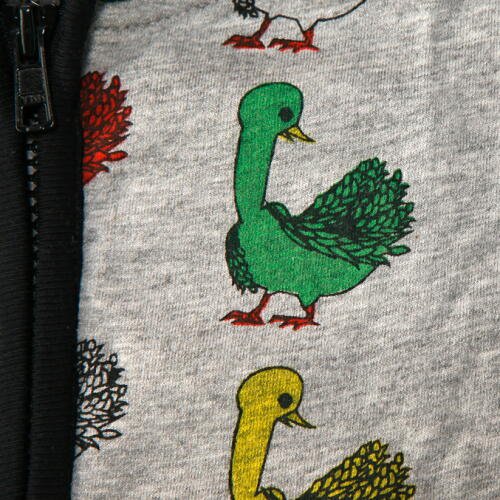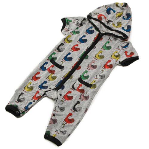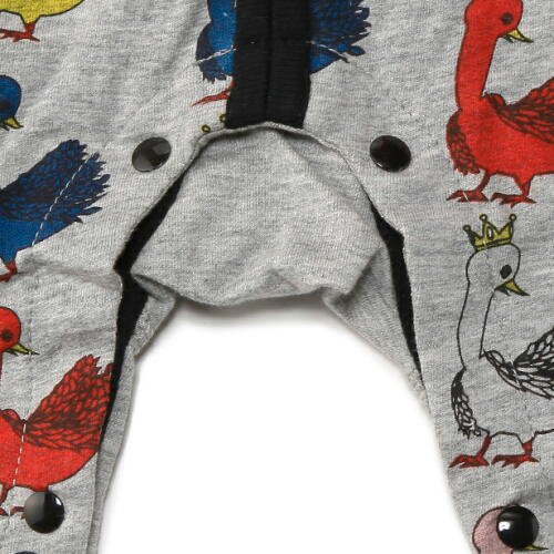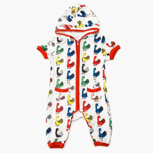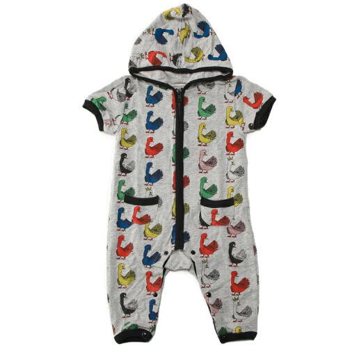 - 【商品のコメント1】人気のスワン柄にジップアップの半袖つなぎが登場。好評のやわらかミニ裏毛(薄手のスウェット生地)素材。ジップアップで簡単着脱。股スナップでオムツ替えもラクです。上質コットン100%。