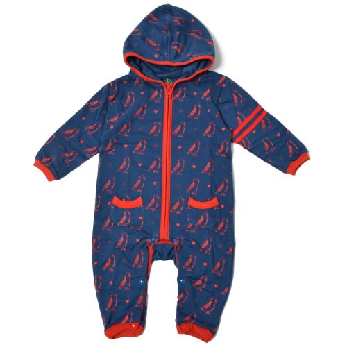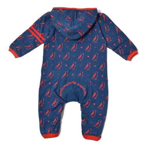 Mademoiselle papillon ジップアップ 長袖 カバーオール ハートインコ 男の子 女の子 【ネイビー:90】
