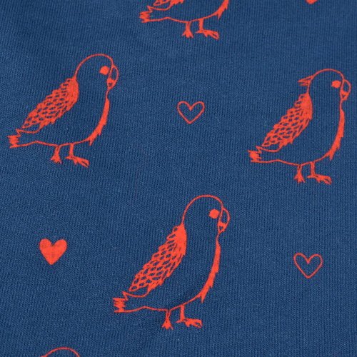 - 【商品のコメント1】インコ大好き!人気の「ラブバード」。こんなにカワイイ柄はめったに出ません。厚すぎないから動きやすく、薄すぎないから丈夫でしっかりとした生地感。好評の薄手のスウェット生地。コットン100%。