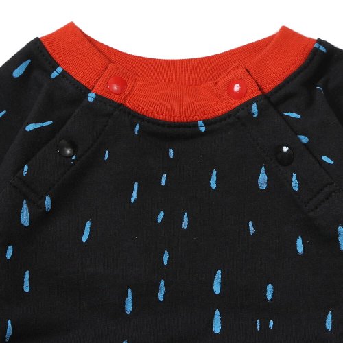 - 【商品のコメント2】素材はミニ裏毛(スウェット生地)です。ブランドのネームタグもコットンで縫い付けてあるのでチクチクしません。お尻の部分は切り替えになっています。前胸スナップ付きで着脱もラク。