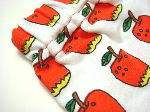 - 【商品のコメント1】リンゴ柄が素朴で可愛いです。ハンドクラフト感たっぷりのモンキーパンツです。パンツ丈はひざくらいです。ミニ裏毛。(薄手のスウェット生地)ピッタリするのでワンサイズ上をおススメします。