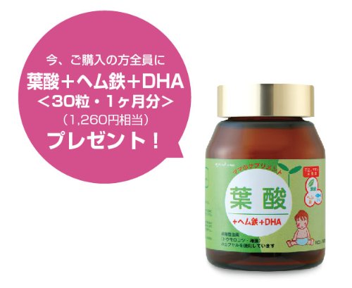 - 購入者全員に、妊娠期に人気の「葉酸サプリ30粒(約1ヶ月分/1,260円相当)」をプレゼント!