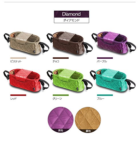 鍵やお財布、携帯電話など…お散歩やちょっとした近所のお出かけならカバンは要りません!道の段差などで、小物入れの中身が落ちるのを防げるフタ付だから安心ですね。また、鍵などの貴重品は内側のジッパーポケットに入れておけます!ベビーカーのハンドルにバックルで留めるだけだから、着脱もとっても楽々♪既存の製品は黒が多い中、明るくポップなカラーを豊富に揃えました。